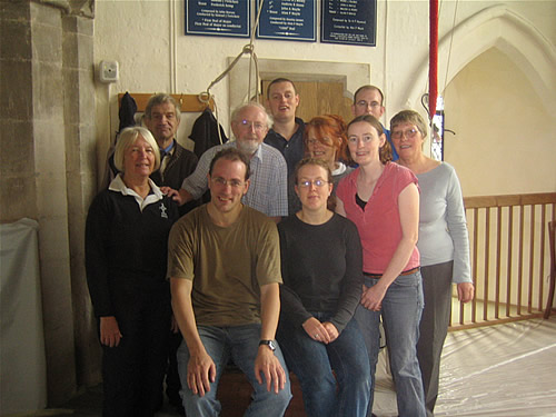 In October 2005 we visited some rings in Suffolk which are a little heavier than Histon's bells (9cwt) for a bit of extra heavy bell practice. The towers were Stoke By Clare (13cwt), a nice anticlockwise 6. Clare (28cwt) 8 the heaviest of the day. Long Melford (15cwt) 8. Lavenham (21cwt) 8 being the last ring of the day. |